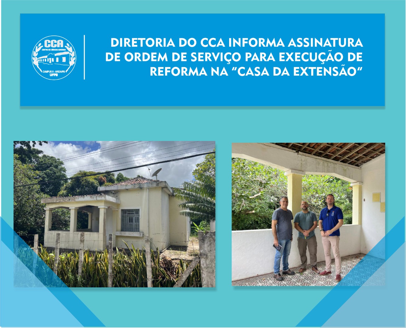 DIRETORIA DO CCA INFORMA ASSINATURA DE ORDEM DE SERVIÇO PARA EXECUÇÃO DE OBRA NA “CASA DA EXTENSÃO”