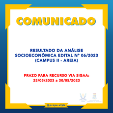RESULTADO DA ANÁLISE SOCIOECONÔMICA EDITAL Nº 06/2023 (CAMPUS II - AREIA)