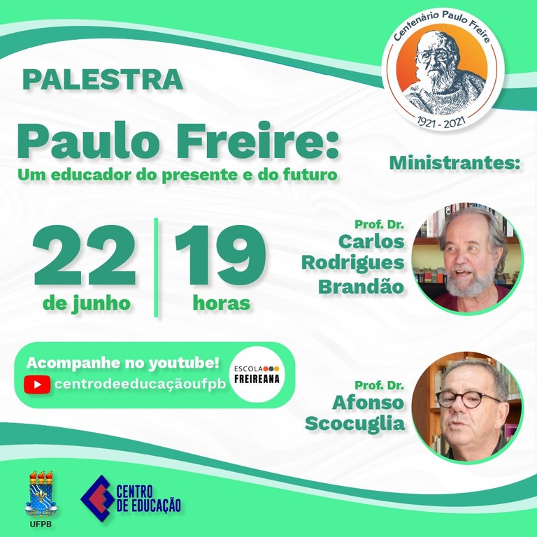O CE, rumo ao Centenário de Paulo Freire, convida para mesa Paulo Freire: um educador do presente e do futuro
