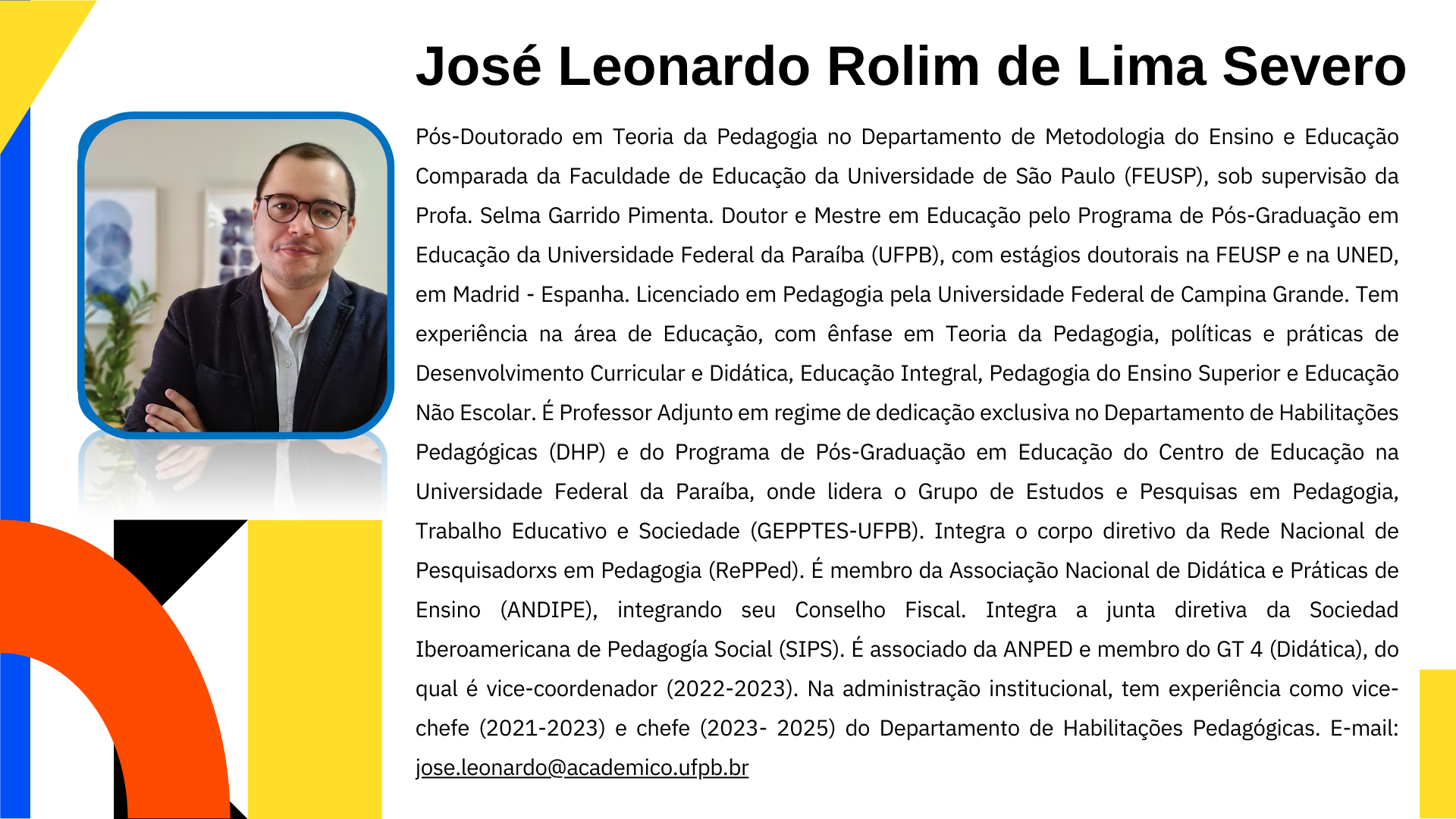 Pós-Doutor em Ciências da Educação pela Universidade de Coimbra (2016) e Pós-Doutor Sênior em Gestão e Inovação pela Universidade Nove de Julho/SP (2025).