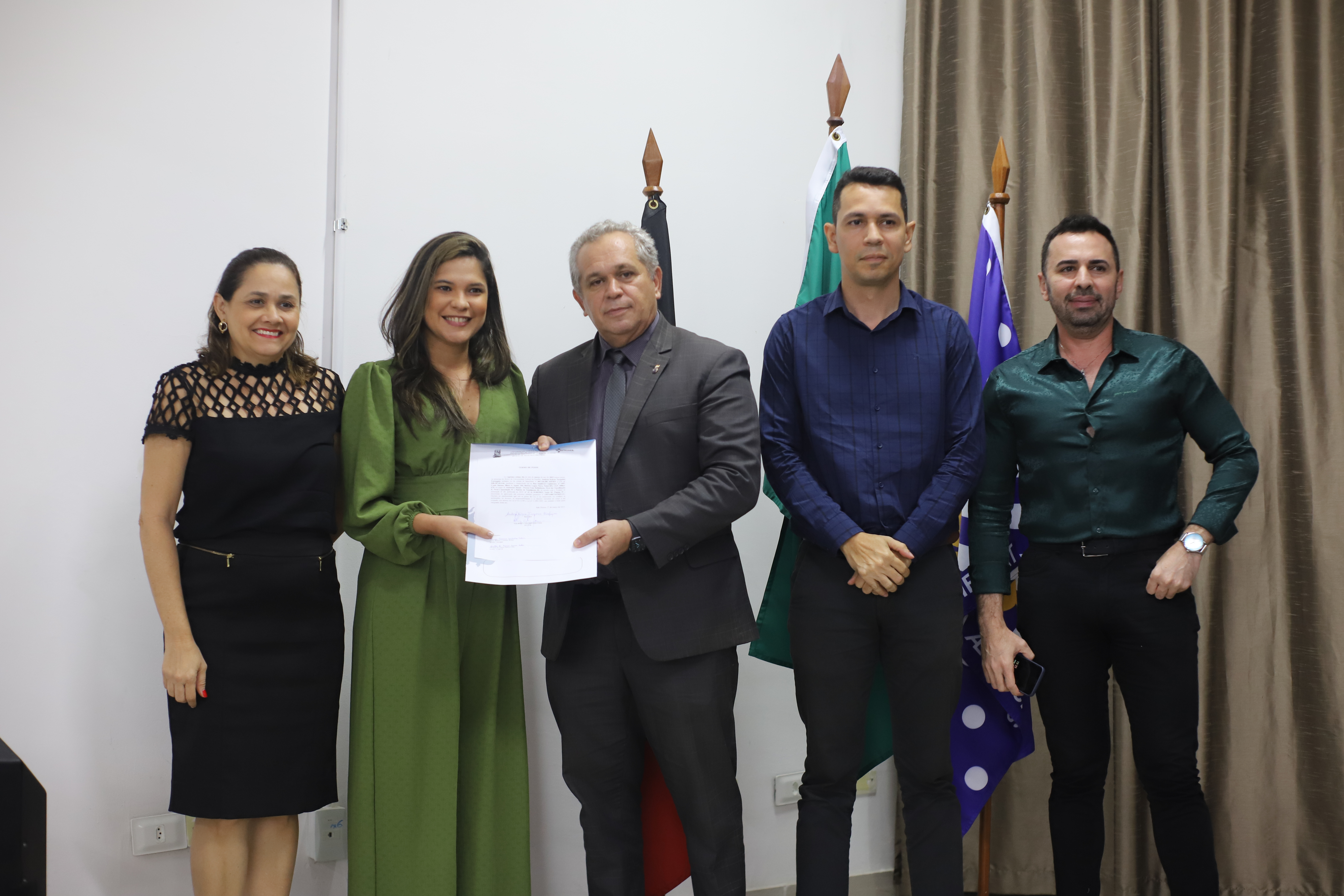 Após as falas de acolhida, todos os TAEs receberam os termos de posse assinados. Uma delas foi a pedagoga Jéssica Emmily Cunha.
