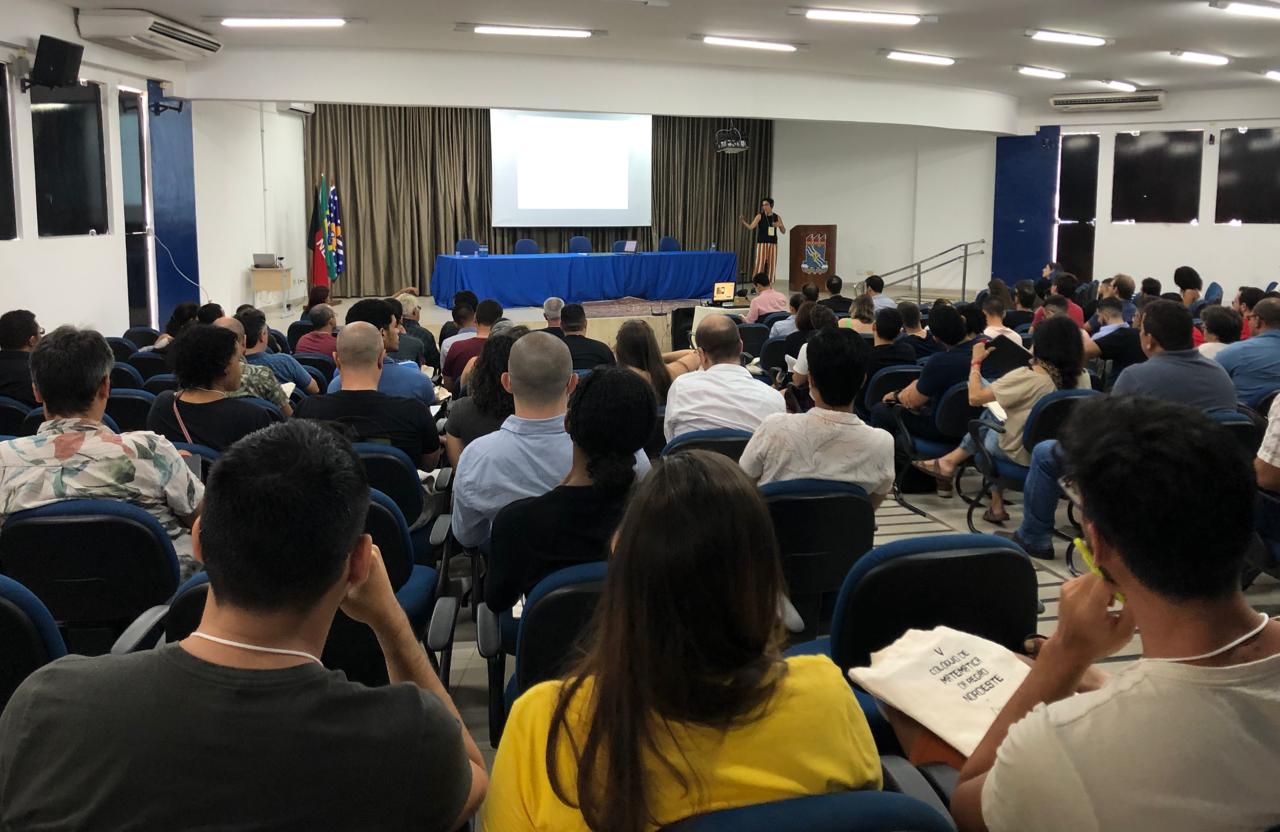 Teve início, nesta segunda-feira (7), a 5ª edição do Colóquio de Matemática da Região Nordeste, evento presencial promovido pelo Departamento de Matemática da Universidade Federal da Paraíba (UFPB), em parceria com a Sociedade Brasileira de Matemática (SBM). A solenidade de abertura do colóquio, que segue até o próximo dia 11, no campus João Pessoa, ocorreu no início da manhã, no auditório da reitoria.